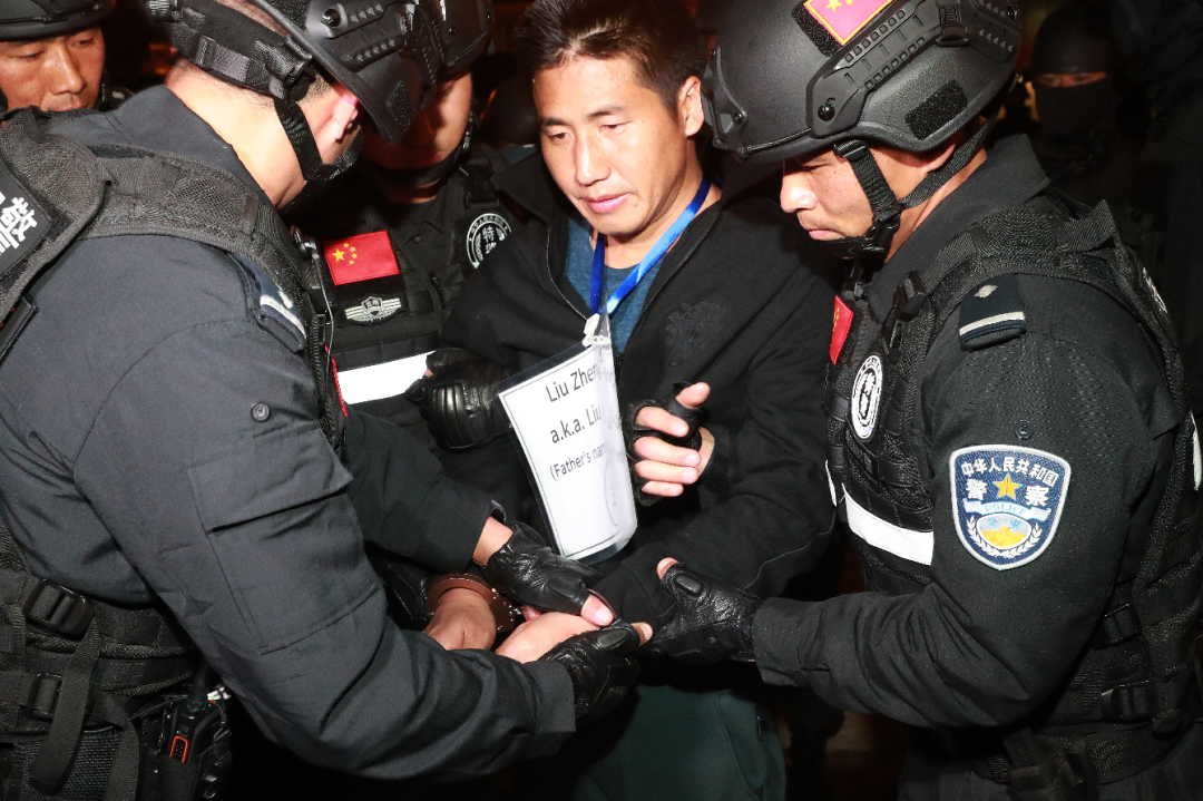 2024年1月30日,在缅甸内比都国际机场,缅甸警方依法向我公安机关移交缅北重大犯罪嫌疑人刘正祥。张建鑫 摄