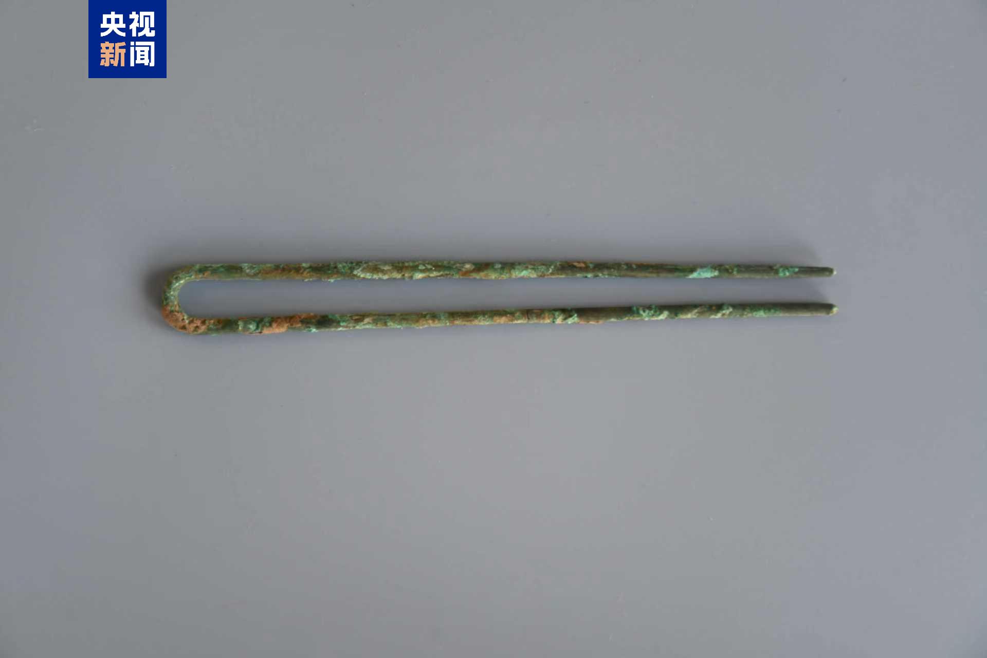 铜簪呈“U”形,由一根铜丝弯折而成,簪体的横截面为圆形。铜指环保存较好,部分有锈蚀,圆环状,横截面近圆形,素面。