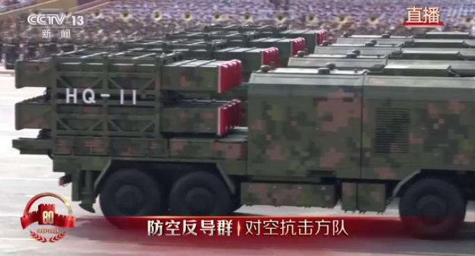 这次阅兵,23个装备方队分为7个作战群,防空反导群3个方队之对空抗击方队接受检阅。