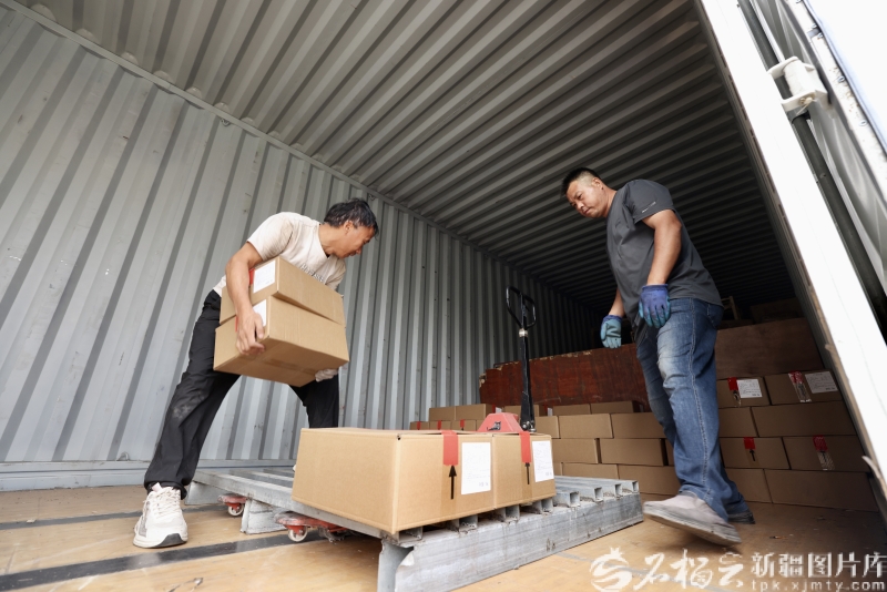 9月10日,吐鲁番丝路明珠农业生物科技有限公司,工作人员在装货。