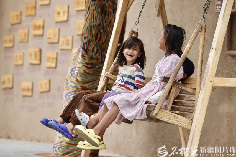 9月10日,吐鲁番市高昌区亚尔镇新城片区新城西门村,小朋友在荡秋千。