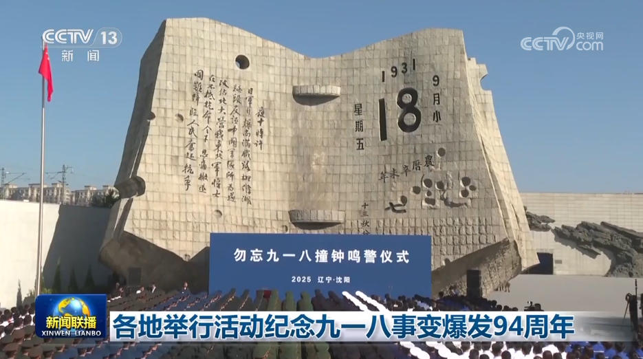 9月18日上午,在辽宁沈阳“九·一八”历史博物馆残历碑广场,勿忘“九一八”撞钟鸣警仪式举行。社会各界人士代表约1000人在现场参加纪念活动。14名撞钟手共同撞响警世钟14下,代表中华民族14年浴血抗战的艰苦历程。